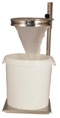 Dank der höhenverstellbaren Konstruktion lässt sich der Ständer flexibel an die Höhe des verwendeten Eimers oder Hobbocks anpassen. Das Ergebnis: ein sicherer, wackelfreier Halt beim Sieben von Honig – selbst bei größeren Mengen.