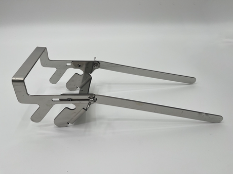 Stainless steel honeycomb extractor pliers with hive chisel and return spring.