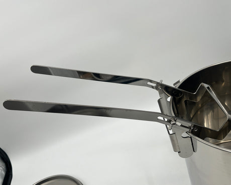 Adjustable bucket holder for all stainless steel bottling buckets, honey buckets, and pails